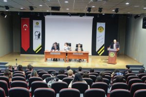 Çeviri sektöründeki çalışmalarını ve deneyimlerini paylaşan konuklar, tavsiyeleriyle öğrencilerimizin gelecek planlamaları için yol gösterici bilgiler sundular.